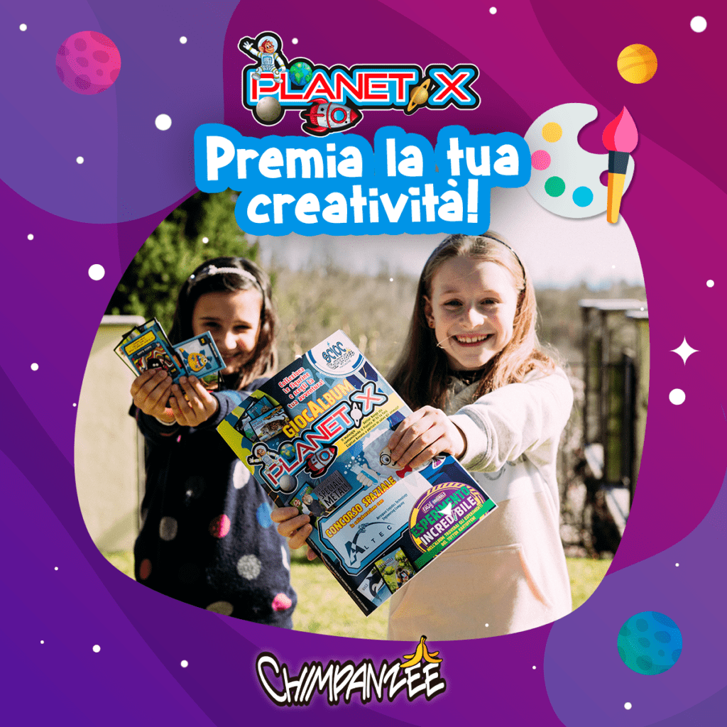 CONCORSO SPAZIALE PLANET-X Concorso creativo per le scuole Promotore: Chimpanzee S.R.L. Prodotti: Album di figurine “Planet-X” e progetto educativo dedicato al tema dell’esplorazione spaziale veicolato da Chimpanzee S.R.L. in collaborazione con ALTEC Premi: Voucher da 500 € per l’acquisto di materiale scolastico Validità: Marzo – Settembre 2020 Paesi Coinvolti: Italia ✨ SCOPRI DI PIU’ SUI BANDI DI CONCORSO QUI