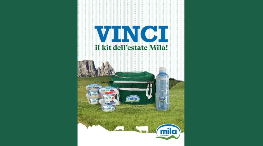 RISPONDI E VINCI CON MILA! Concorso Instagram ad estrazione finale Promotore: Mila | LATTE DI MONTAGNA ALTO ADIGE Soc. Agr. Coop. Prodotti: Marchio Mila Premi: Kit borsa frigo + borraccia + skyr Mila Tipologia: Instagram Comment contest Validità: Luglio 2024 Paesi Coinvolti: Italia